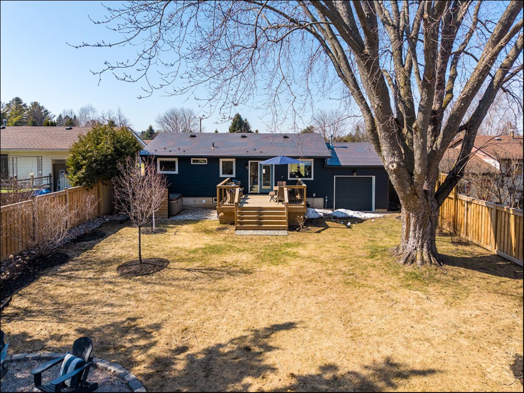 You can't put a price on the feeling this house gives you - warm, considered, and alive with personality. Completely reimagined from top to bottom, this raised bungalow gem sits on a generous 60 x 140 ft lot in one of Thornbury's most beloved in-town neighbourhoods - and there is simply nothing else like it on the market. ~1,900 sq ft of beautifully executed living space, 3 bedrooms on the main level (one used as office) plus 2 additional bedrooms, 4 piece bath recreation living room in a fully finished lower level. Perfect for full-time families, ski crews, downsizers, or professional couples-- your search is over! Every inch lovingly renovated: all new windows , new siding with exterior insulation (Van Dolders), engineered hardwood main level, luxury vinyl plank lower, custom kitchen with granite counters and new appliances, updated bathrooms with new vanities, tile, shower and tub(lower level), all new trim, doors and fixtures, wainscotting, magnificent shiplap accent walls, & 2 electric fireplaces one on each level.The backyard is where the magic really happens - cozy fire pit, hot tub, large patio, fully fenced back yard with back gate, & lush landscaping front and back. All on an incredible 60 x 140 ft lot. Big mechanicals done: Trane furnace (2019), metal roof (2019).Short drive to ski hills, golf courses in the Blue Mountains, steps to trails, parks, marina & Georgian Bay. Walkable to school, library, downtown restaurants and shops. Move in, unpack, exhale.