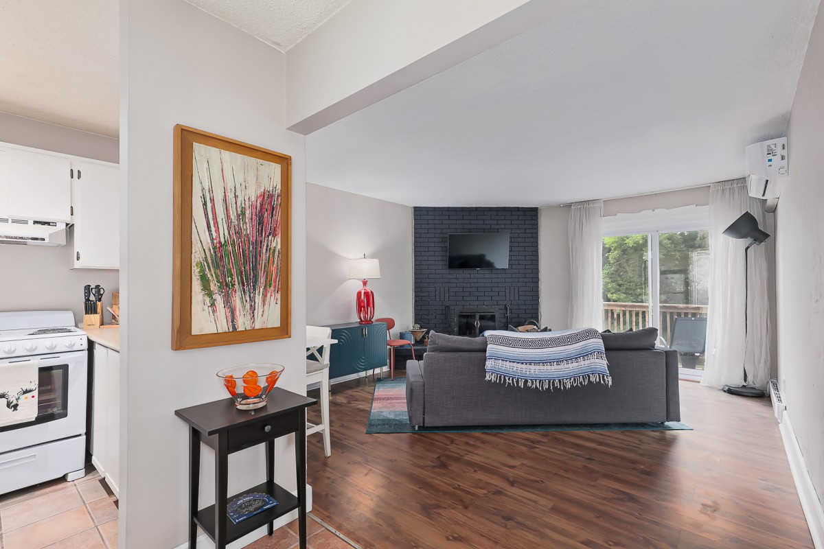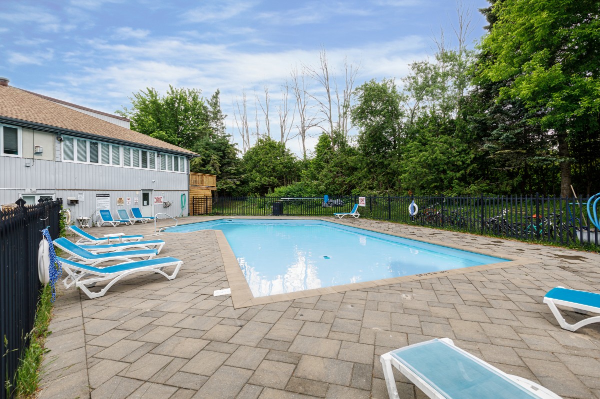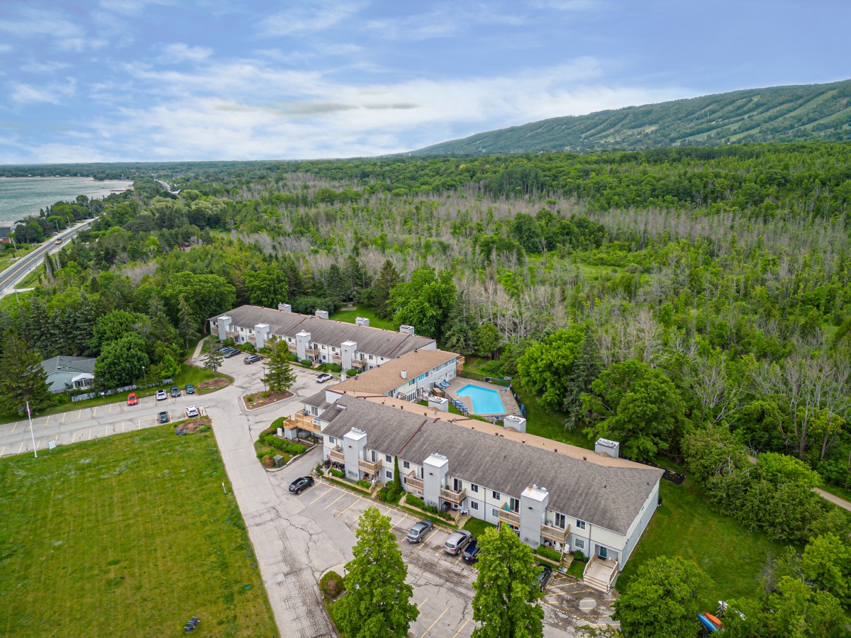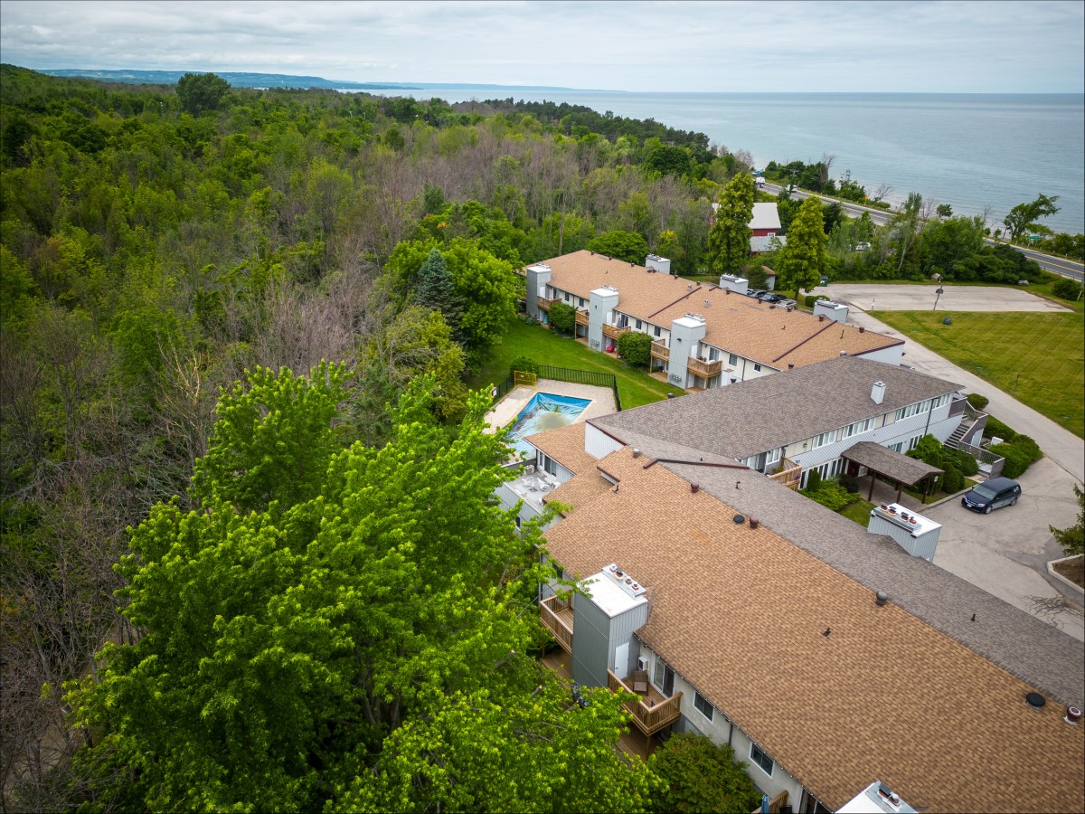 PRIVATE TOP-FLOOR RETREAT WITH GREEN SPACE VIEWS -Escape to this waterfront community located at Craigleith Shores featuring a private deck overlooking the Georgian trail and pool area. This thoughtfully designed 1-bedroom, 1-bathroom home boasts an open galley-style kitchen with breakfast bar, cozy corner wood-burning fireplace, and brand new high-efficiency heating and AC Ductless system. Four-piece bath and personal storage locker off the deck complete the package. RESORT-STYLE AMENITIES: Outdoor pool, indoor sauna & exercise room, in-building laundry (just a few doors down!), bike racks and storage, kayak and SUP racks, lobby lounge, and secure package delivery lock drop boxes for convenience. UNBEATABLE LOCATION: Step outside to Georgian Trail for cycling and walking. Ideally situated to dip in the clear clean Georgian Bay Waters at Craigleith provincial park. Minutes to North Winds beach, Blue Mountain Village, Collingwood and charming Thornbury. FLEXIBLE LIFESTYLE: Perfect for weekend getaways or full-time Bayside living. Low-maintenance condo living meets resort amenities in one of Georgian Bay's most desirable locations. Experience privacy, convenience, and natural beauty where every day feels like vacation. Your Georgian Bay lifestyle awaits!